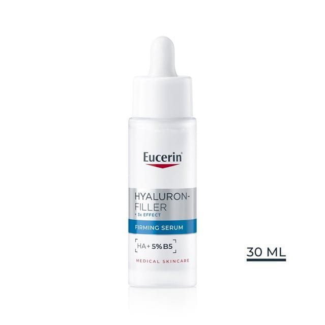 Eucerin Hyaluron-Filler Firming Serum kombinuje 5% provitamina B5 i mikro hijaluronsku kiselinu kako bi obezbedio dugotrajnu hidrataciju i popunio bore